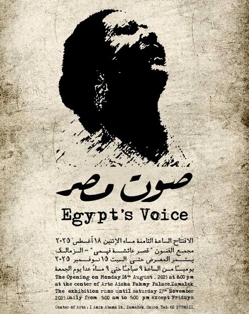 هتفتتح النهارده وزارة الثقافة معرض "صوت مصر" في مجمع الفنون بقصر عائشة فهمي بالزمالك، واللي بيستمر لحد 15 نوفمبر 2025.