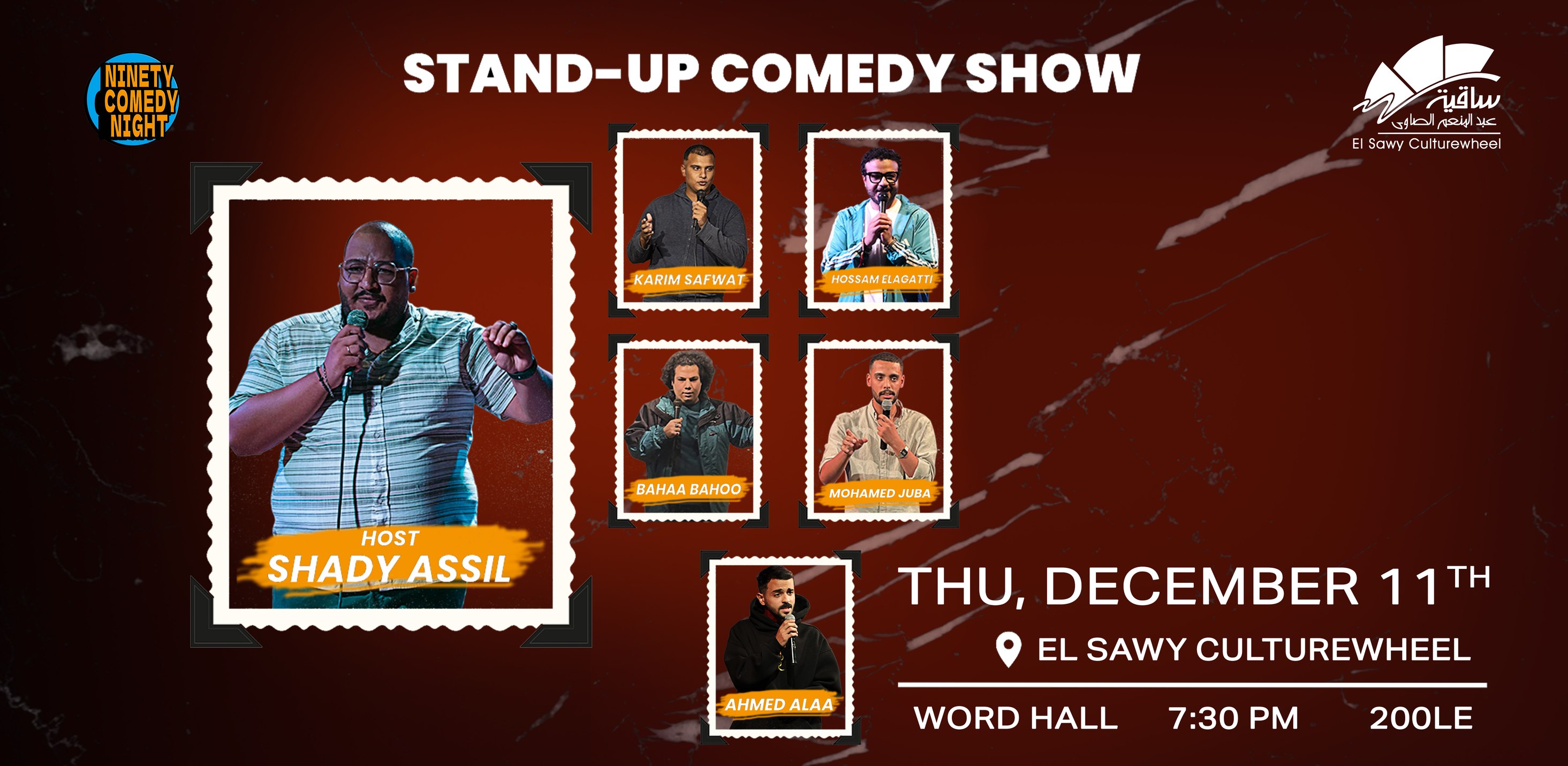 ماتفوتوش قعدة كلها ضحك مع Ninety Comedy Night على مسرح ساقية الصاوي.. التفاصيل هنا.