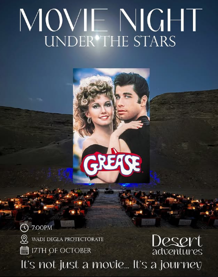 استمتعوا بسحر السينما في الهواء الطلق في محمية وادي دجلة- بالمعادي، مع عرض فيلم "Grease". فوسط أجواء طبيعية ساحرة وتحت سماء منورة بالنجوم.. التفاصيل هنا.