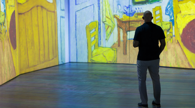 أكتر من 300 عمل فني بيتحولوا لمشاهد متحركة حواليك من كل اتجاه — على الحيطان والأرضيات والسقف — باستخدام تقنيات عرض وصوت متطورة، تخليك حاسس إنك ماشي جوه لوحات فان جوخ نفسها، في تجربة مدتها من 60 لـ 75 دقيقة.
