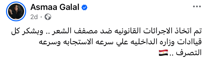 بعد الفيديو، أسماء جلال قررت تلجأ للقانون، وقدمت بلاغ رسمي ضد "زاين" بتهمة التشهير والإساءة لسمعتها.