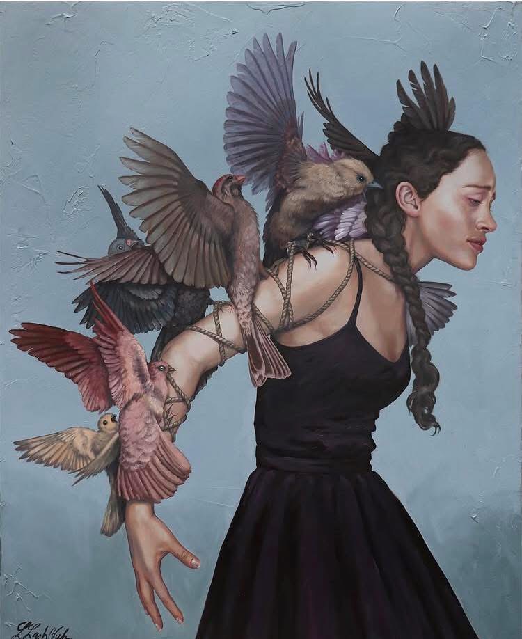 من بين الأعمال، عرضت لوحة بعنوان "صنعت لنفسي بعض الأجنحة"، وهنا كانت الأزمة، بعد اكتشاف صاحبتها الأصلية حقيقة الأمر، وهي الرسامة الدنماركية ليزا لاش نيلسون، وكانت رسمة اللوحة دي سنة 2019، يعني مش مها الصغير خالص!