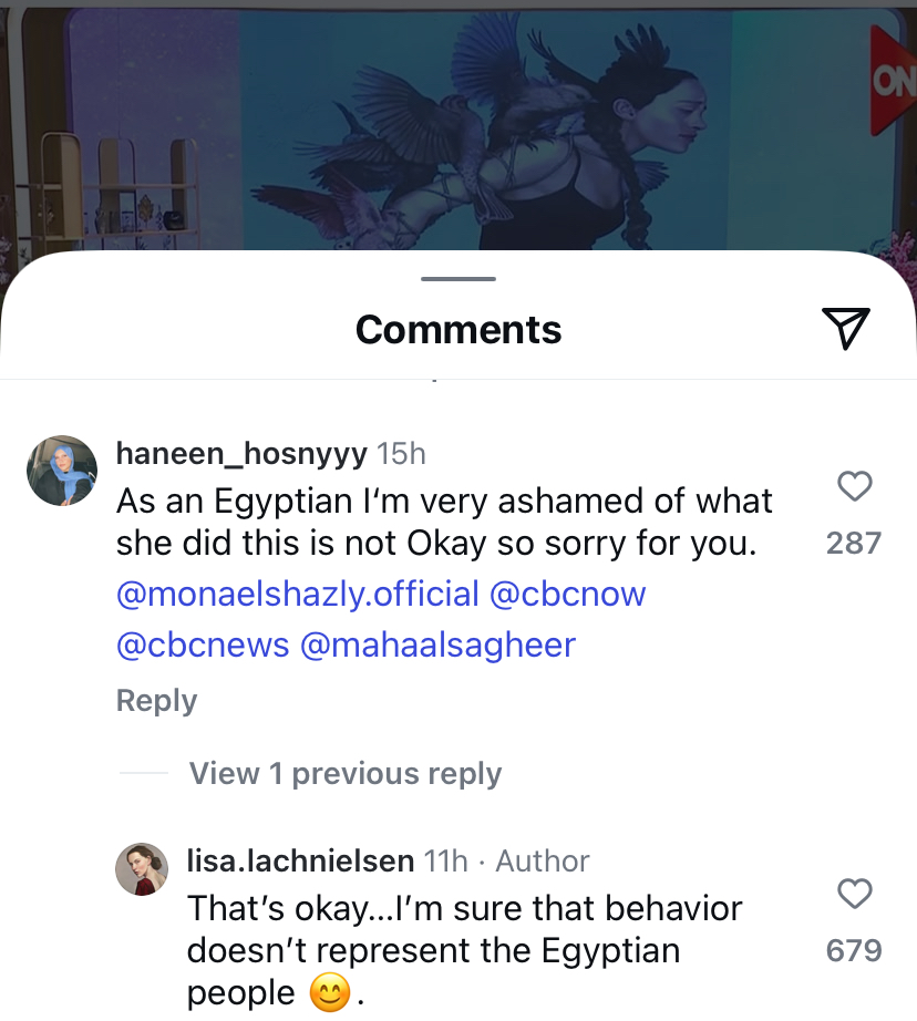 مش بس كده، دخل عدد من المصريين على حساب ليزا، واعتذرولها، وهي ردت عليهم وقالت إنها عارفه أن التصرف ده مبيمثلش المصريين.
